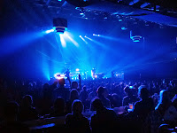 - I should also give props to the venue. It has an elevated stage in front of an open center area with tables and seats around the perimeter, and more seating at the edges past the structural columns. The slightly elevated bar area is in the back, where people enter, and there is also a balcony level. It's kind of like Plush in St. Louis, but nicer. All in all, it's a pretty nice setup for small-ish shows.